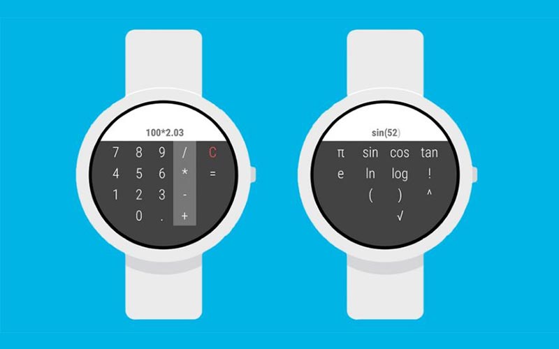 Đơn giản nhưng hữu ích, ứng dụng máy tính cho phép Wear thực hiện chính xác, nó cung cấp một máy tính đơn giản trên cổ tay. Các nút ấn tương đối dễ, màu sắc và bố cục dễ nhìn thậm chí là các chức năng khoa học dễ tận dụng. Ngoài ra bạn có thể điều khiển bằng giọng nói.