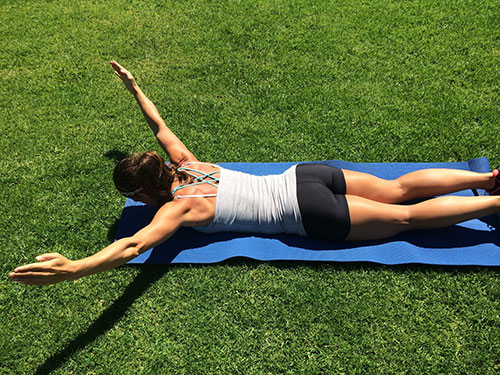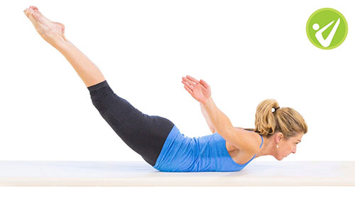 Nhịp 2: nâng 2 chân và và 2 tay ra sau, giữ tư thể này khoảng 5 giây