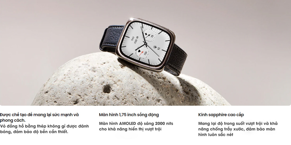 Vuông 1.75" AMOLED độ sáng 2000 nits |