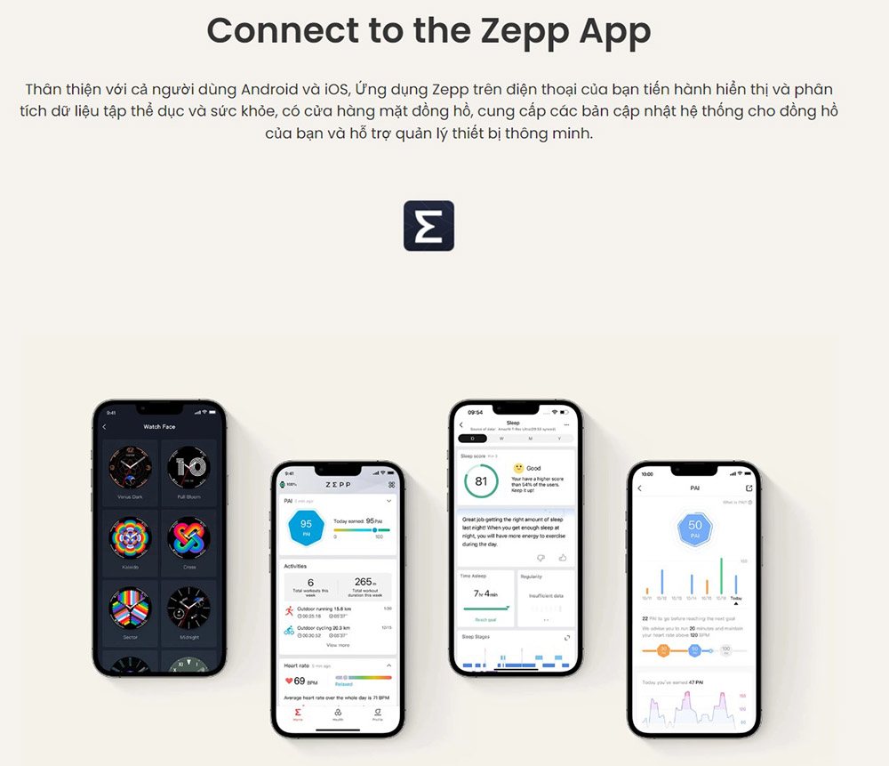 | Tương thích và Đồng bộ | - Android 7.0 trở lên - iOS 12.0 trở lên |