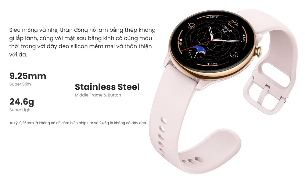 | Màn Hình | Tròn 1.28" AMOLED, viền 2.5D Kính cường lực + lớp phủ chống vân tay |