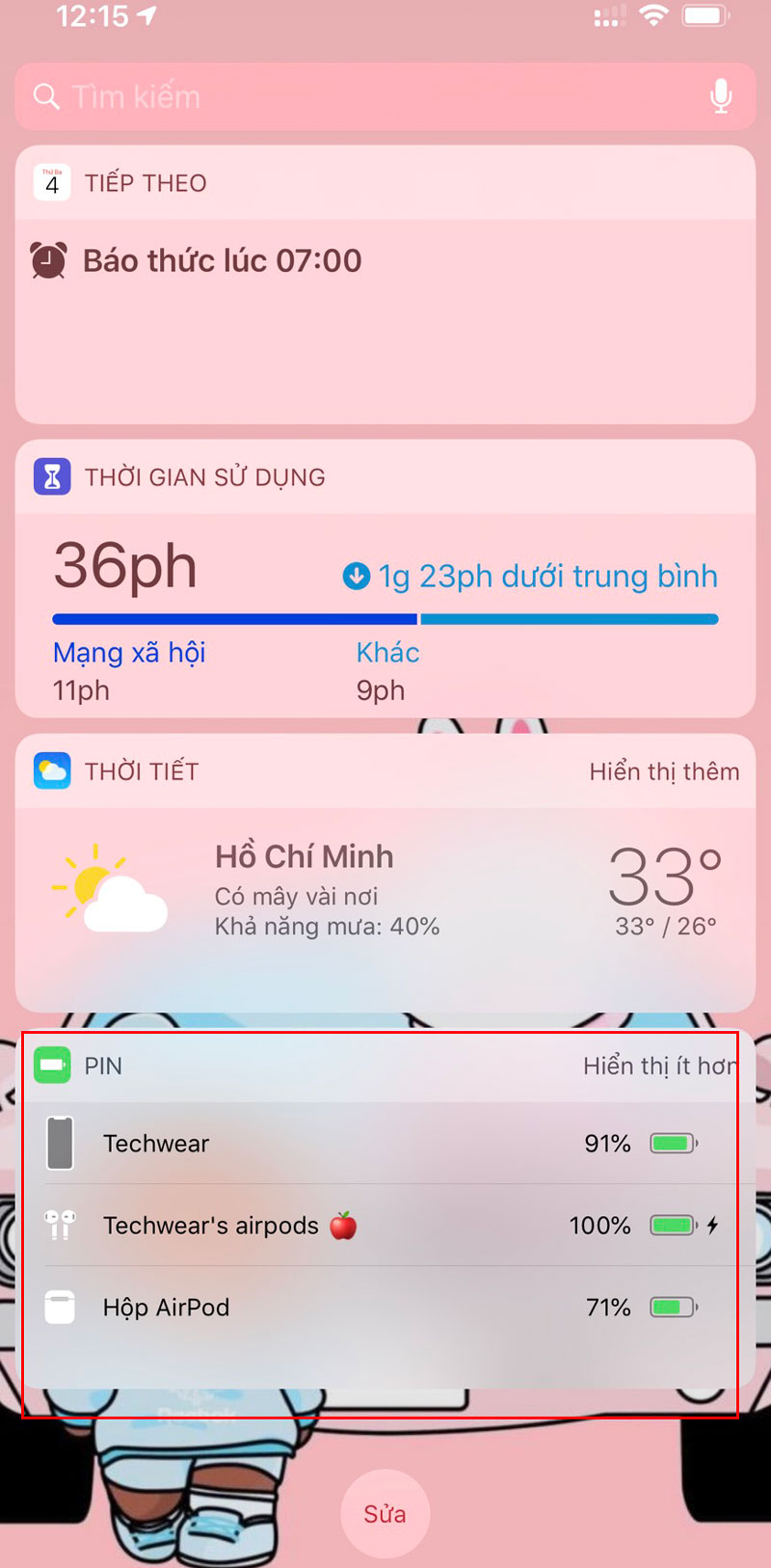 - Cách 2: Kiểm tra bằng Batteries Widget trên iPhone.