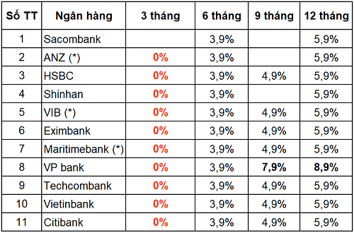 */ Bảng lãi suất của các ngân hàng áp dụng từ 02.09.2017 đến 31.12.2020