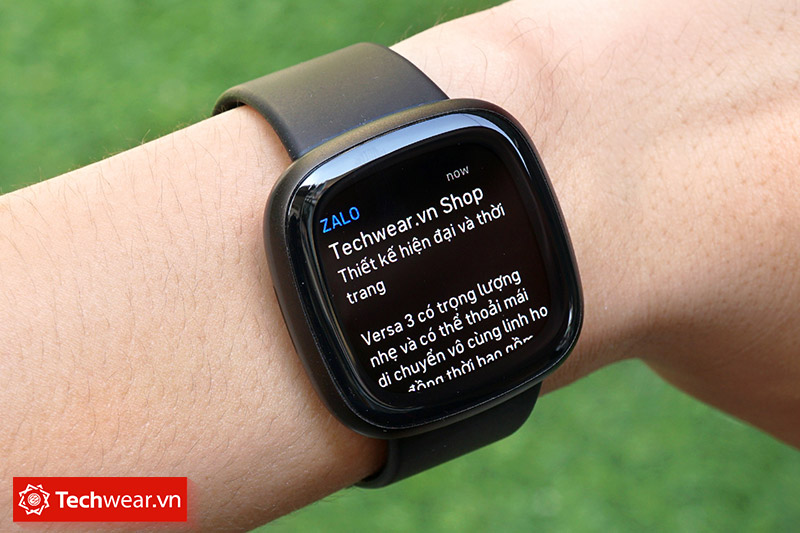 Bạn hãy yên tâm rằng, tất cả các tính năng có trên Versa 2 thì cũng sẽ có trên Versa 3. Với tính năng nhận thông báo tin nhắn, nếu bạn sử dụng điện thoại Android, bạn có thể trả lời tin nhắn bằng giọng nói, tin nhắn cài sẵn hoặc biểu tượng cảm xúc. Nó hoạt động khá tốt và phản hồi nhanh.