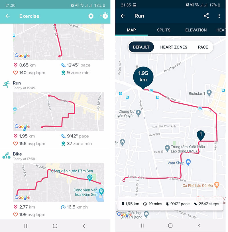 Định vị GPS sẽ lưu lại quãng đường tập luyện trên bản đồ