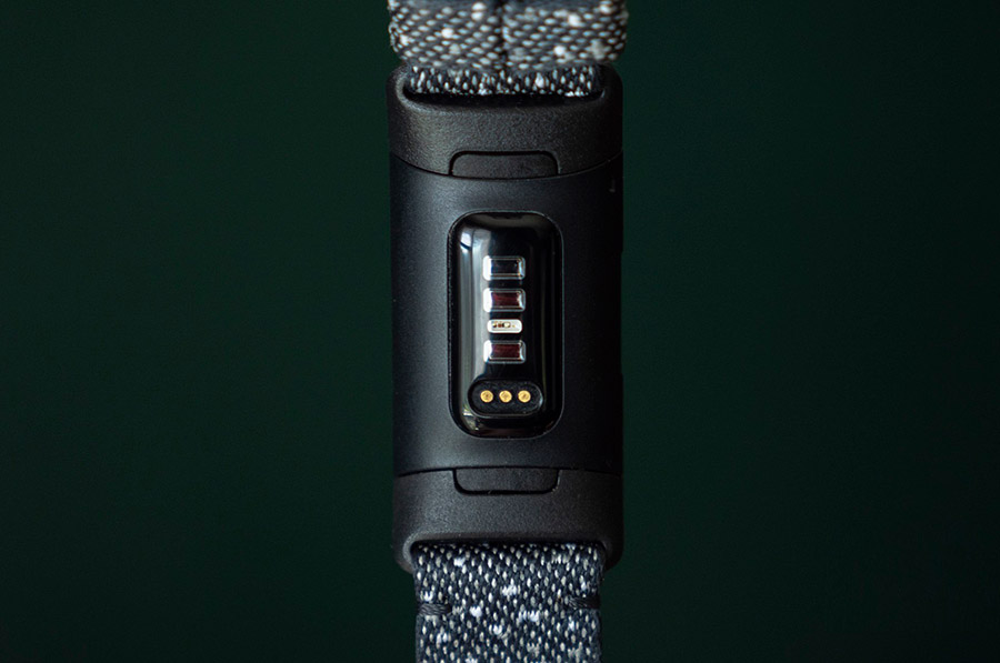 Cận cảnh cảm biến nhịp tim phía sau fitbit charge 4