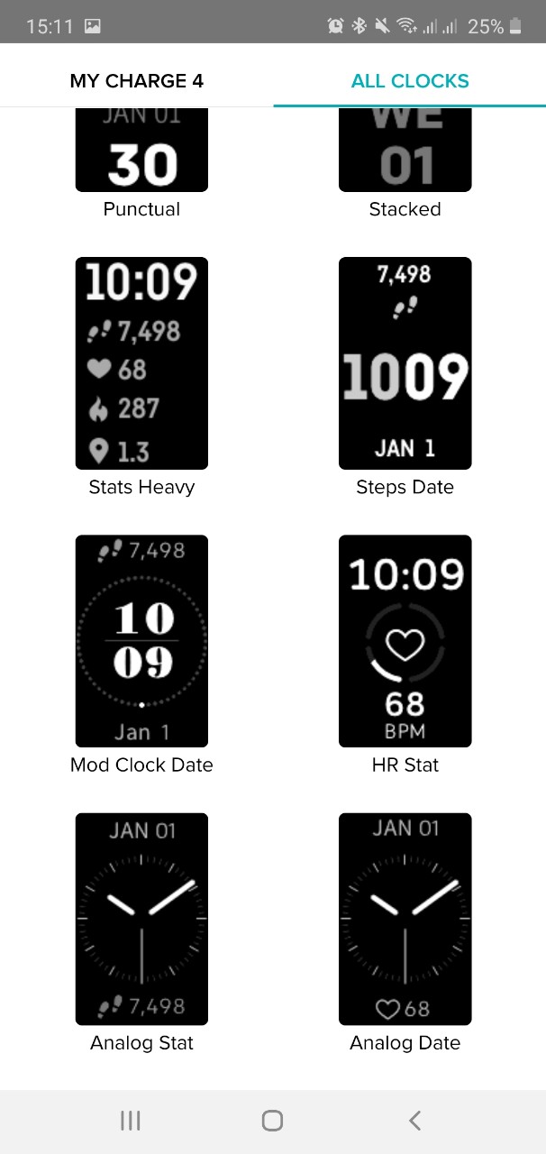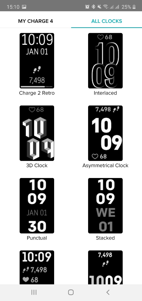 - Bổ sung các mặt đồng hồ mới: Fitbit đã cập nhật thêm nhiều kiểu mặt đồng hồ mới cho Charge 4, khi trải nghiệm Techwear.vn đếm tới 24 mặt khác nhau.