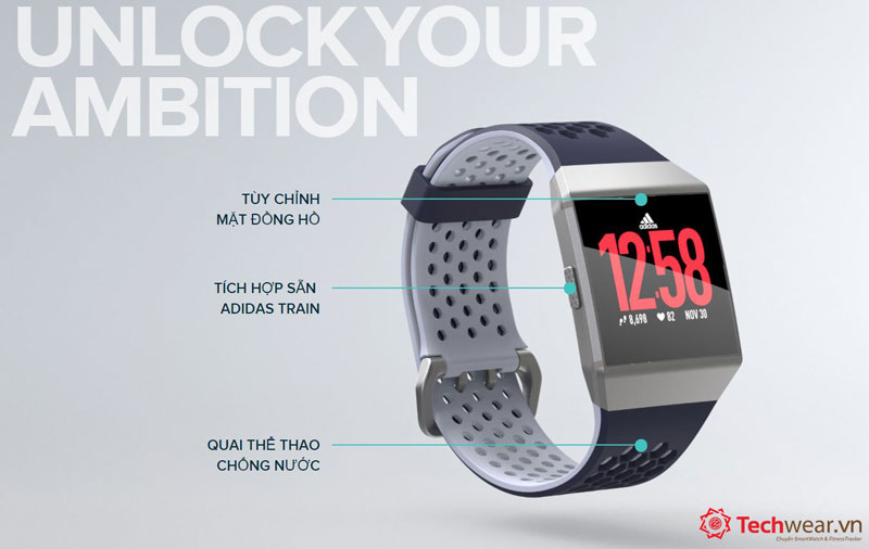 Nay với phiên bản Fitbit Ionic Adidas - Fitbit hứa hẹn sẽ mang lại cho bạn thiết kế độc quyền giúp bạn đạt đến cấp độ cao hơn trong việc luyện tập của mình.