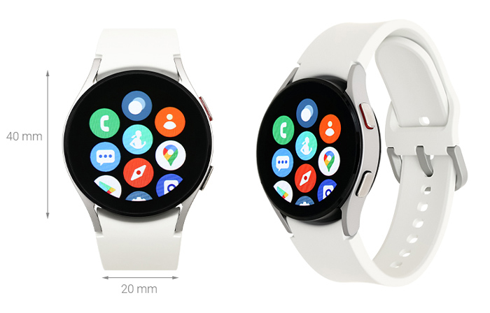 Đồng hồ Galaxy Watch 4 bản 40mm này được Samsung thiết kế đơn giản với mặt đồng hồ dạng tròn có đường kính 40 mm thường thấy ở đồng hồ thông minh tạo nên phong cách năng động, cuốn hút. Khung viền đồng hồ được làm từ chất liệu nhôm bền chắc, trọng lượng nhẹ. Bên cạnh đó dây đeo silicone êm ái, không gây khó chịu khi đeo suốt ngày dài, kể cả khi người dùng vận động, tập thể thao ra nhiều mồ hôi tay.