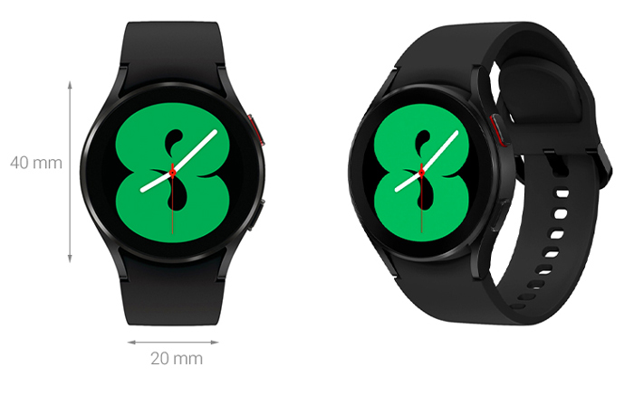 Đồng hồ Galaxy Watch 4 bản 40mm này được Samsung thiết kế đơn giản với mặt đồng hồ dạng tròn có đường kính 40 mm thường thấy ở đồng hồ thông minh tạo nên phong cách năng động, cuốn hút. Khung viền đồng hồ được làm từ chất liệu nhôm bền chắc, trọng lượng nhẹ. Bên cạnh đó dây đeo silicone êm ái, không gây khó chịu khi đeo suốt ngày dài, kể cả khi người dùng vận động, tập thể thao ra nhiều mồ hôi tay.