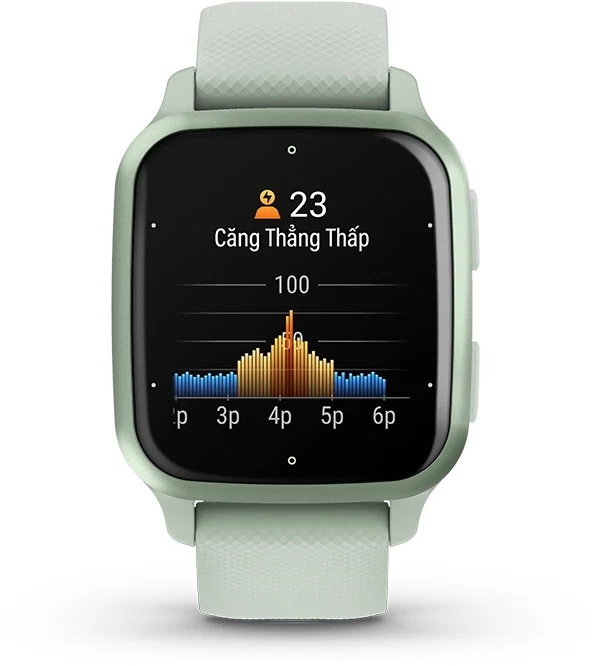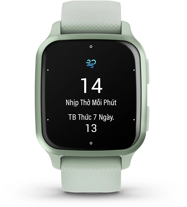 Khi bạn muốn thư giãn hoặc tập trung, bạn có thể sử dụng tính năng Theo Dõi Nhịp Thở. Khi đó, Venu Sq 2 sẽ thực hiện giám sát mức căng thẳng và nhịp thở để giúp bạn hiểu rõ hơn về tình trạng hô hấp của mình.