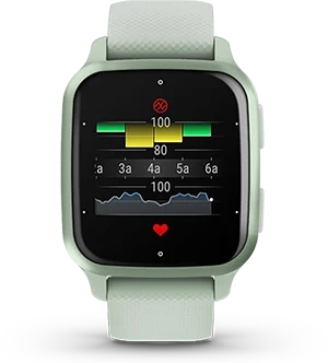 Dựa vào các chỉ số: nhịp tim, Pulse Ox, hô hấp và mức căng thẳng, thiết bị sẽ đưa ra báo cáo về các chỉ số thể chất thông qua ứng dụng Garmin Connect.