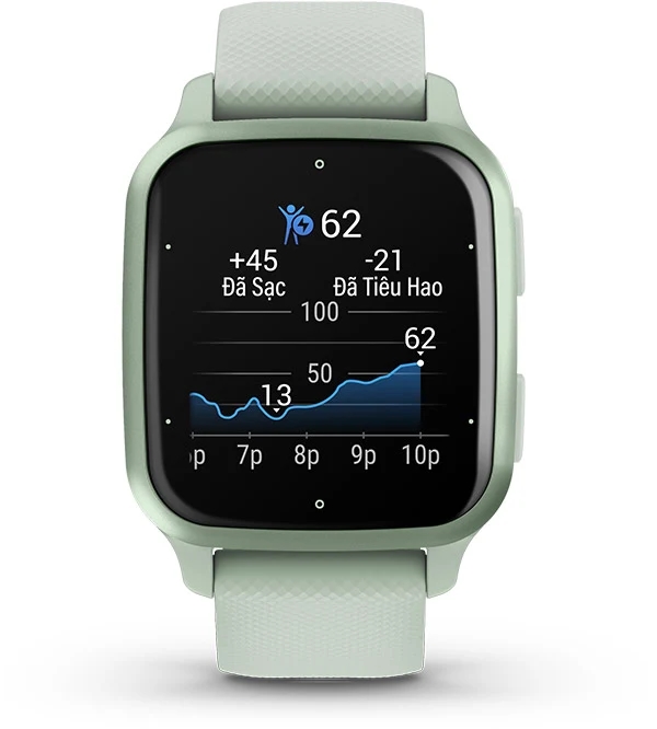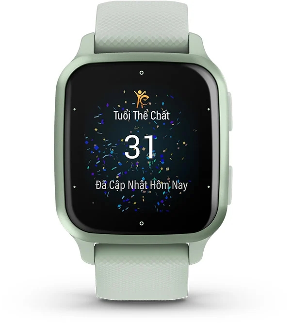 Từ cường độ luyện tập và thống kê thể chất được đồng hồ ghi nhận, kết hợp với chỉ số BMI hoặc tỷ lệ phần trăm chất béo3 ... Venu Sq 2 có thể ước tính độ tuổi thể chất của bạn. Độ tuổi thể chất được chính cơ thể bạn phản ánh - không chỉ được đo bằng thời gian.