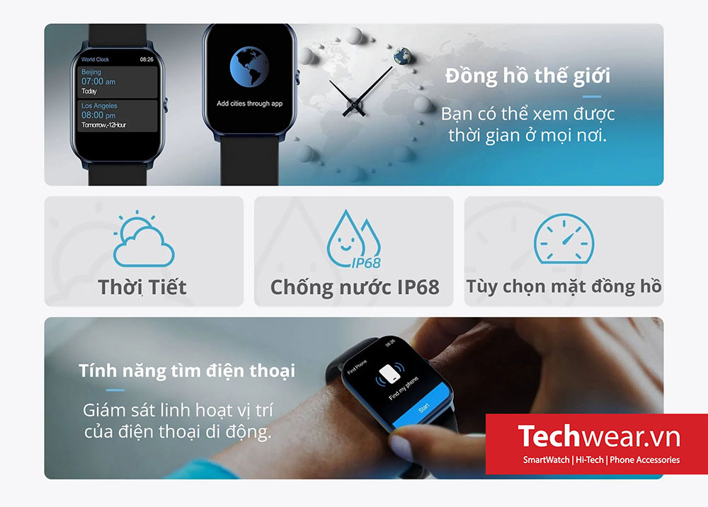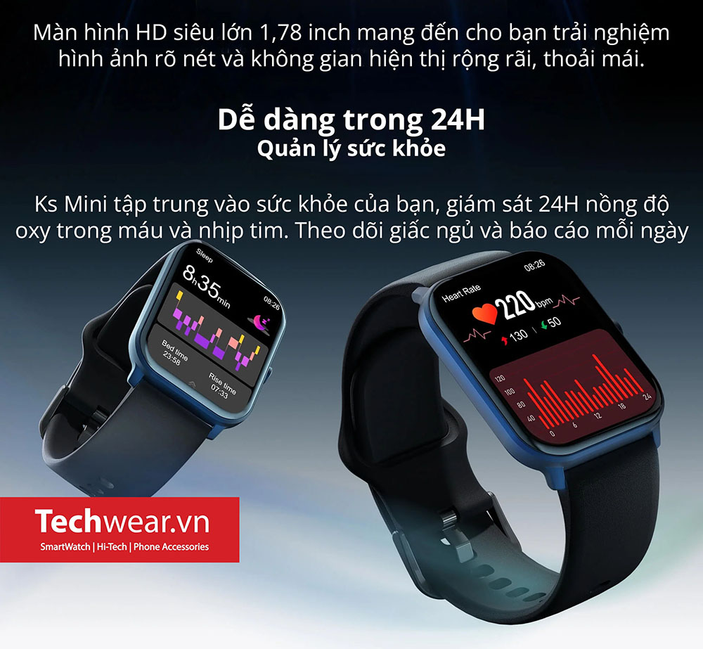 | THEO DÕI SỨC KHỎE | Đo nhịp tim 24/7. Độ bão hòa oxy máu SPO2. Mức độ căng thẳng. Theo dõi giấc ngủ. |