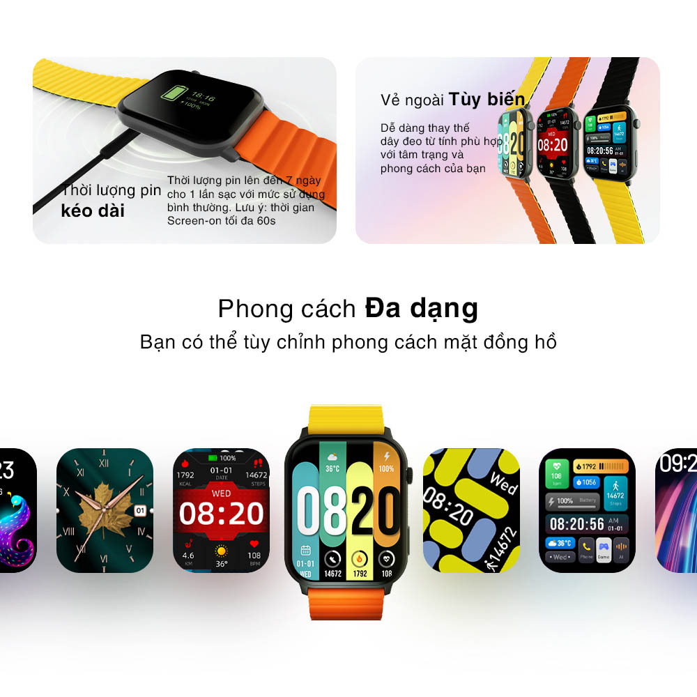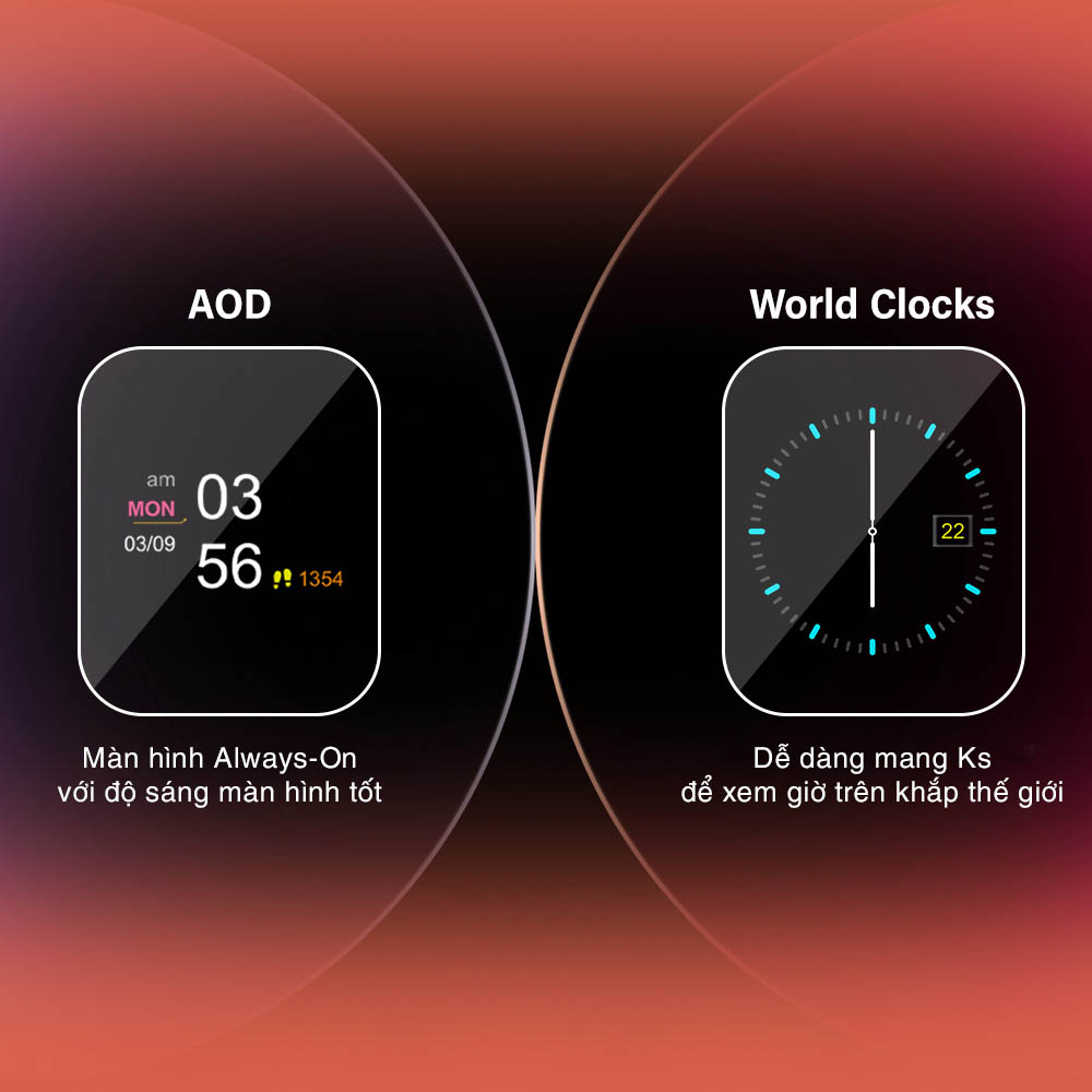 | THEO DÕI SỨC KHỎE | Đo nhịp tim 24/7. Độ bão hòa oxy máu SPO2. Mức độ căng thẳng. Theo dõi giấc ngủ. |