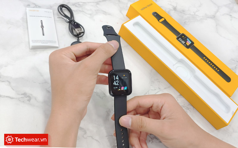 Thiết kế sang trọng, thoải mái với khả năng chống nước IP68 trên Realme Watch giúp cho chiếc Smartwatch đủ sức cạnh tranh với các mẫu đồng hồ thông minh giá rẻ khác trên thị trường. Dây đeo làm từ chất liệu silicone mềm, thoải mái để đeo trên tay cả ngày. Dây đeo còn có 2 thiết kế khác nhau với 4 màu sắc riêng biệt: đỏ, đen, xanh dương và xanh lục. Bạn có thể dễ dàng thay thế dây tùy vào nhu cầu sử dụng của mình.