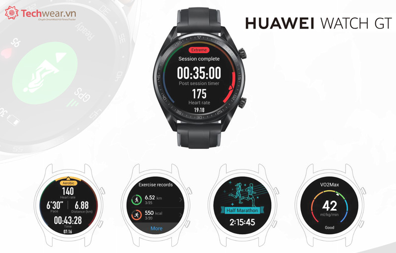 Như Techwear đã đề cập, Huawei Watch GT có nhiều tính năng được tăng cường tập trung vào yếu tố thể thao, sức khỏe hơn là các tính năng thông minh. Do đó, một số cảm biến của Huawei Watch GT đã được nâng cao hơn. Bao gồm