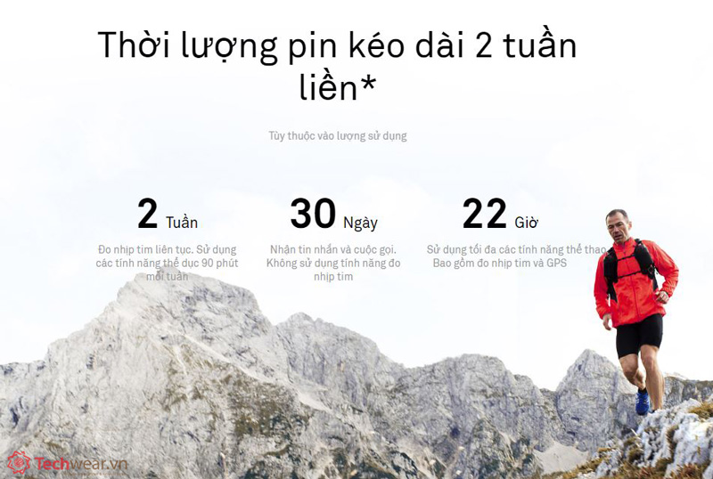 Cụ thể, smartwatch Watch GT có thể đồng hành cùng bạn tận 2 tuần liền nếu bạn chỉ sử dụng tính năng đo nhịp tim ít nhất 90 phút mỗi tuần. Ngoài ra, nếu không sử dụng những tính năng thể thao, bạn có thể sử dụng Watch GT lên đến 30 ngày. Còn khi sử dụng đồng hồ với công suất tối đa, Watch GT có thể kéo dài đến 22 giờ. Tất nhiên Techwear cần lưu ý bạn rằng thời gian sử dụng Huawei Watch GT tùy thuộc vào lượng sử dụng của mỗi người.