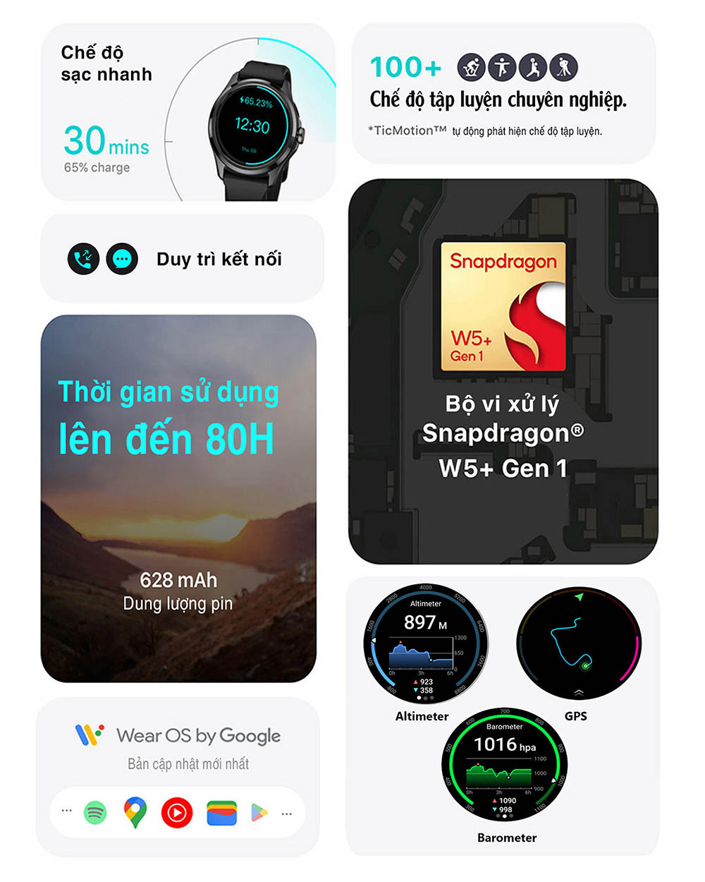 | Hệ điều hành | Wear OS 3 by Google - ngôn ngữ Tiếng Việt 100% |