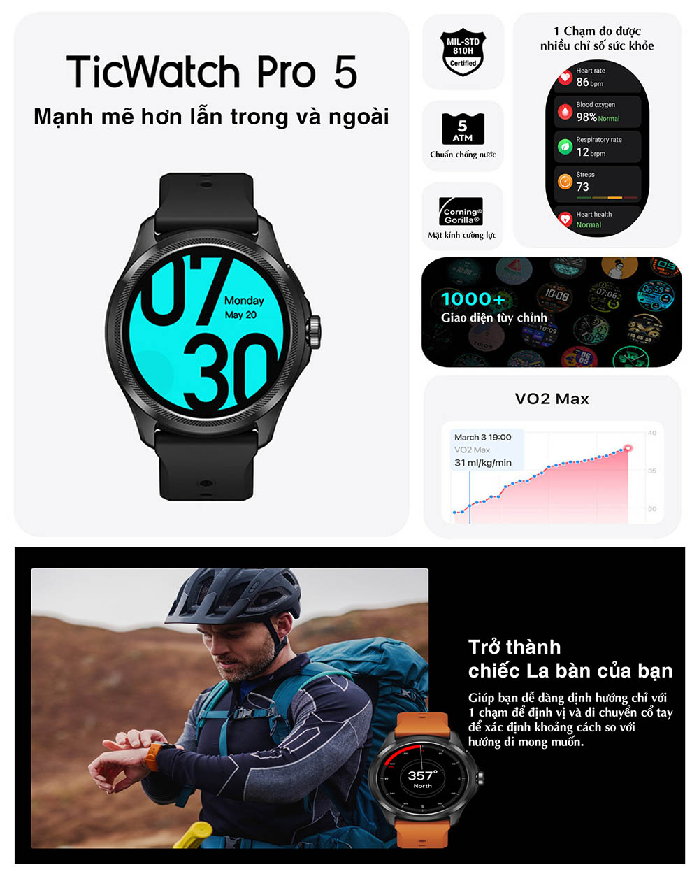 Ticwatch Pro 5, chiếc đồng hồ thông minh đầu tiên được sử dụng bộ vi xử lý mạnh mẽ nhất thời điểm hiện tại: Snapdragon W5+ Gen 1 Wearable Platform. Sản phẩm mới được Mobvoi ra mắt vào tháng 6 năm 2023 hứa hẹn sẽ mang tới nhiều trải nghiệm mới cho khách hàng đam mê công nghệ, khi hệ điều hành Wear OS 3 cũng chính thức được phát hành cùng chiếc smartwatch này.