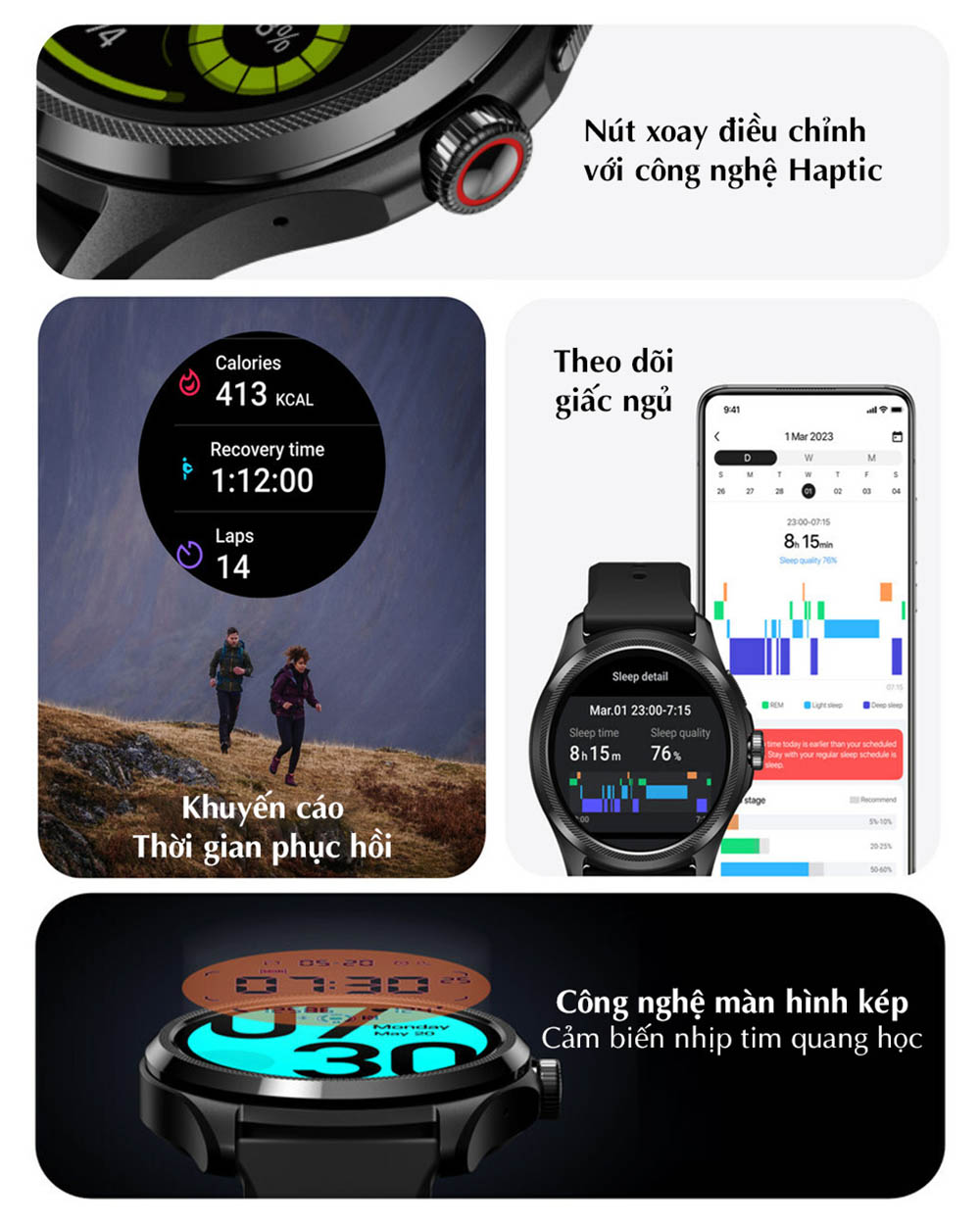 | Màn Hình | Kích thước 1.43“ Full Color Always On Display AMOLED + Ultra-low-power Display Corning Gorilla Anti-fingerprint Cover Glass |