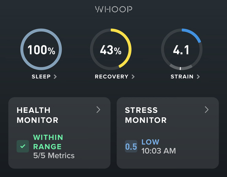 | WHOOP App | Giao diện hiển thị & khuyến nghị |