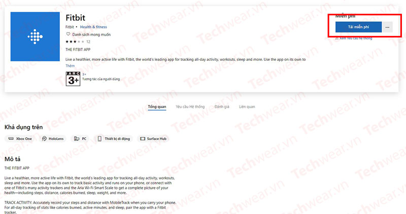 Đối với máy tính Windows, link ở trên sẽ đưa bạn tới trang tải Fitbit. Nhấn vào “Tải miễn phí” > chọn “Get” để tải về ứng dụng Fitbit.