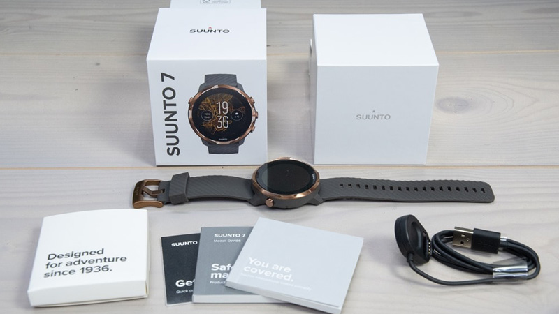 Bên trong là chiếc đồng hồ thông minh Suunto 7, cáp sạc, những cuốn sách giới thiệu và hướng dẫn sử dụng.
