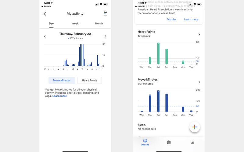 Nó cung cấp một cái nhìn dễ dàng vào lịch sử hoạt động của tuần trước, từ quan điểm tập luyện thể thao đến mục tiêu hoàn thành. Đây cũng là nơi bạn có thể thêm hoặc tùy chỉnh một số dữ liệu Google Fit tương tự mà như trong ứng dụng Google Fit trước đó.