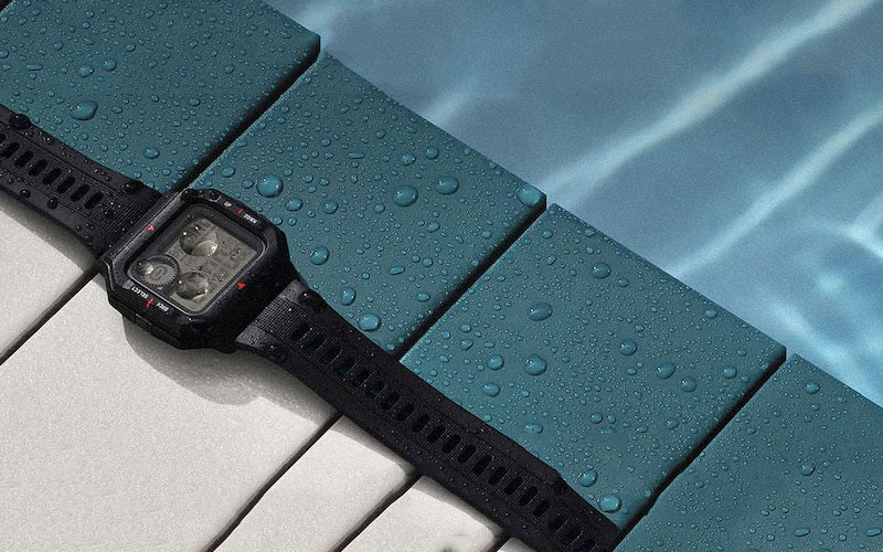 Đồng hồ Amazfit Neo có thiết kế khá mạnh mẽ về ngoại hình khi mặt đồng hồ vuông góc 4 cạnh và 4 nút vật lý. Không những thế chiếc đồng hồ thông minh này còn trang bị cho mình một lớp vỏ cứng cáp và dây deo PUR chống nước. Giúp bạn thoải mái trải nghiệm vì khả năng chống nước được chứng nhận ở độ sâu 50m.