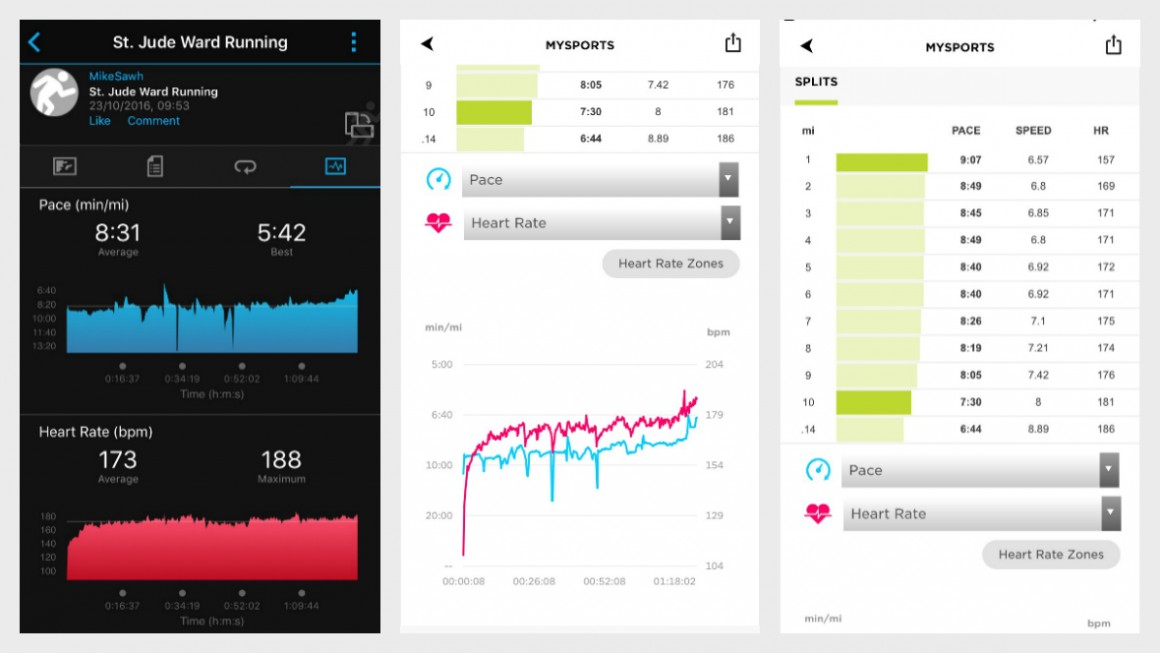 Độ chính xác nhịp tim: Garmin Forerunner 35 (trái) và TomTom Spark 3 (giữa và phải)