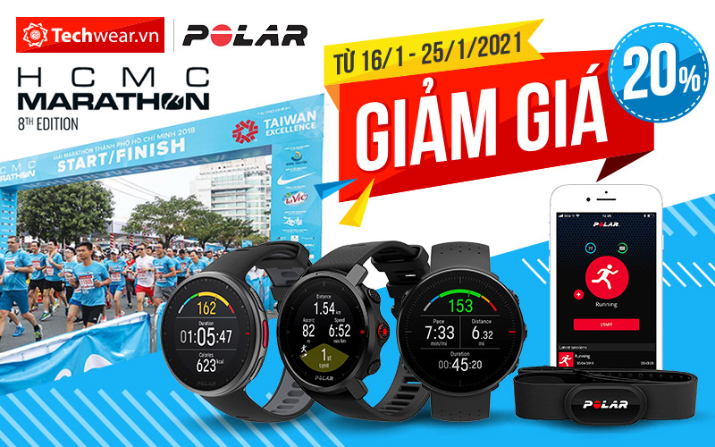 Tại sự kiện này, ngoài việc Polar Watch tham gia tài trợ sản phẩm cho các vận động viên xuất sắc, hãng còn đồng hành cùng Techwear.vn tổ chức chương trình khuyến mại đặc biệt GIẢM GIÁ TỚI 20% các mẫu đồng hồ Polar.