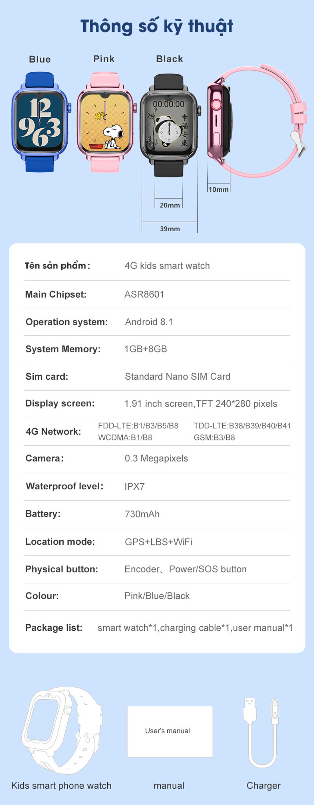 | Loại Smartwatch | Đồng hồ cho trẻ em |